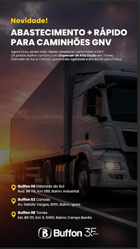 Buffon amplia infraestrutura para caminhões GNV e reforça eficiência nas frotas